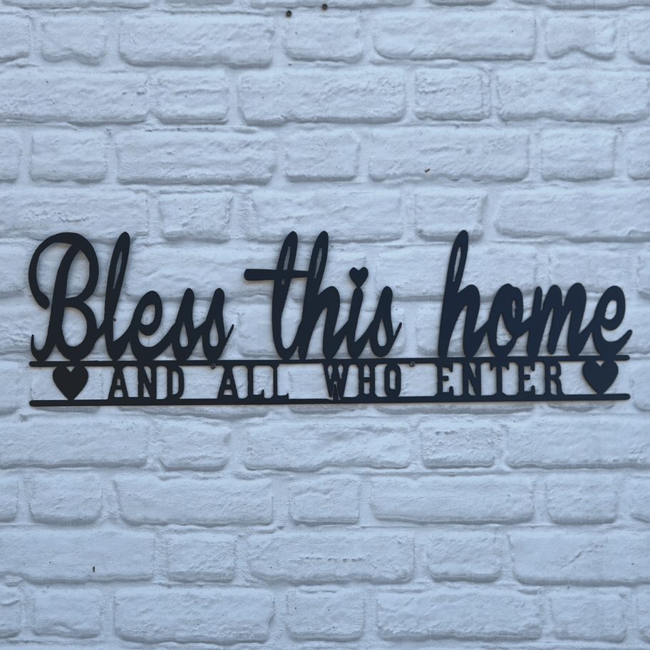 Graceful and welcoming, the Bless This Home metal wall décor features the phrase “Bless this home and all who enter” in beautifully crafted steel. It’s a warm invitation and a meaningful blessing, perfect for entryways, porches, or any room where love and hospitality live. Built to last and designed to inspire, this piece adds heart and faith to your home.